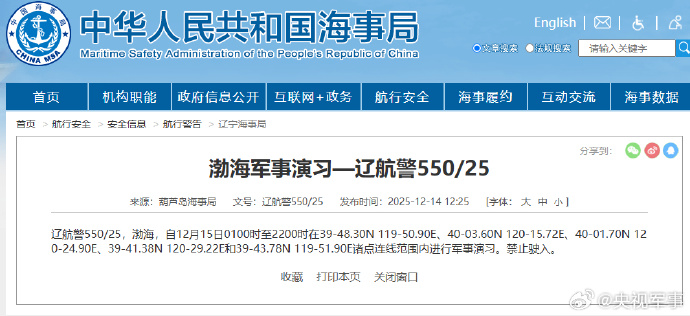 航行警告:渤海部分海域进行军事演习中国海事局网站 28分钟前
