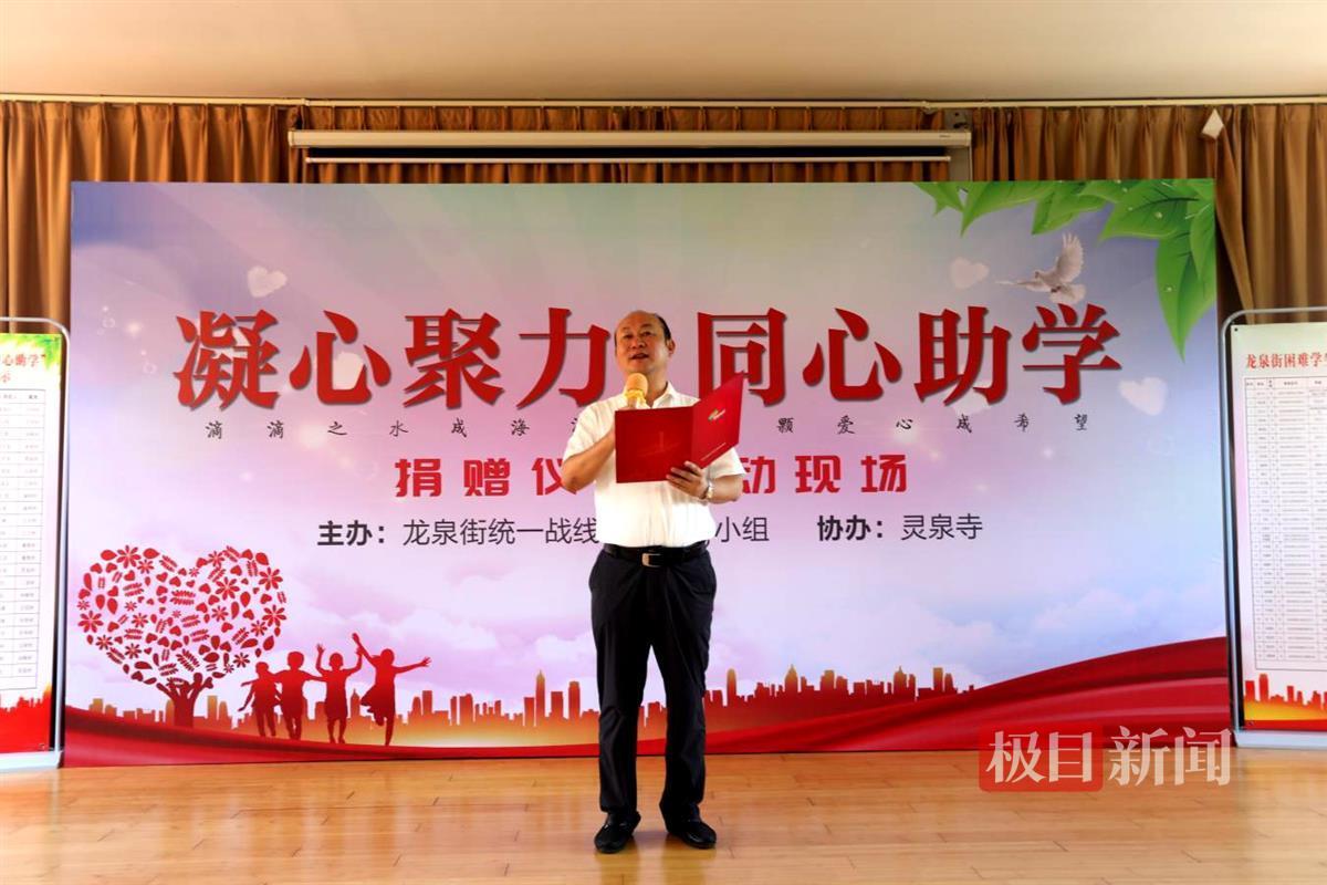“这次爱心助学活动是龙泉街道党工委抓早、抓实新统战助学工作的务实之举,充分体现了广大统一战线人士的责任担当。”龙泉街道党工委书记、办事处主任郭斌介绍,这是街道举办的首届统战爱心助学活动,已初步形成了一定的规模,这足以说明街道统战助学活动得到有广大有识之士的认可。