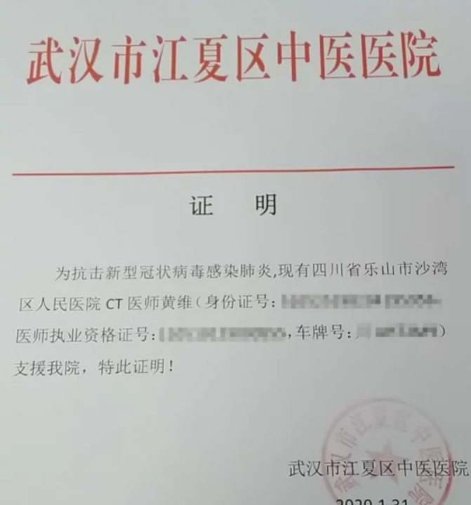 1月31号下午,黄维收到了武汉市江夏区中医医院发来的证明信后,第一时间转发给了同在抗疫一线的妻子。“能不能过了今晚再走?”知道拗不过固执的丈夫,担心晚上路途不安全,妻子向他提出了唯一的一个要求。黄维拨通了妻子电话,还是决定当晚走,“我心里装着事,当晚不走也睡不着,更影响第二天开车。当然,我更怕第二天自己改变了主意。”黄维说道。