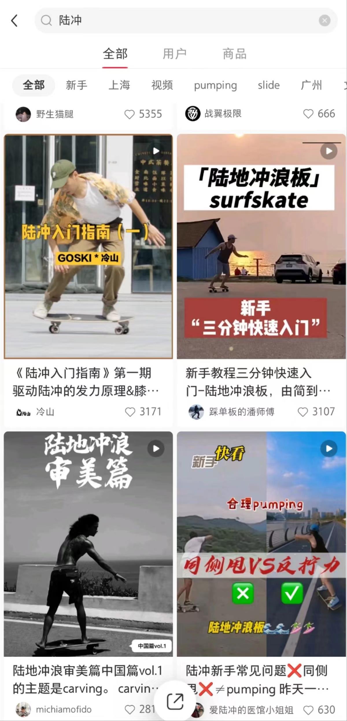 8月23日,极目新闻记者在小红书搜索关键词“陆冲”,找到了众多相关笔记分享,大部分是陆冲运动视频、陆冲板教学、陆冲板推荐等话题。分享的博主中,不少是女性网友。