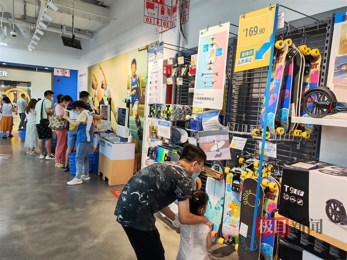 8月22日,在武汉荟聚迪卡侬,记者看到,一些孩子在家长的陪同下,正在挑选滑板。“我自己喜欢陆冲,孩子看到我玩,也闹着要一起学,所以来给他选一款小点的滑板,再回家自己改造一下。”
