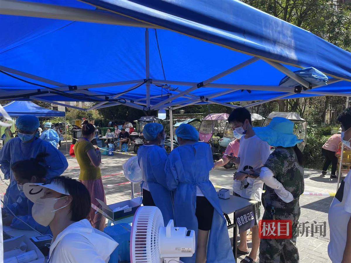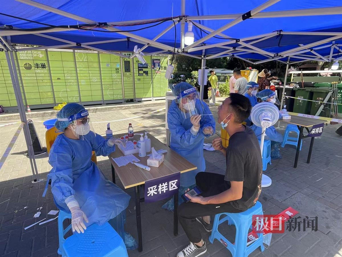 “上午检测结束后脱下防护服,身上的衣服基本都汗湿透了。”胡先生声音有些嘶哑,上午检测结束后他第一时间躲进空调房。因为高温,中午12时至下午6时这段最热的时间,他们并没有安排核酸检测。