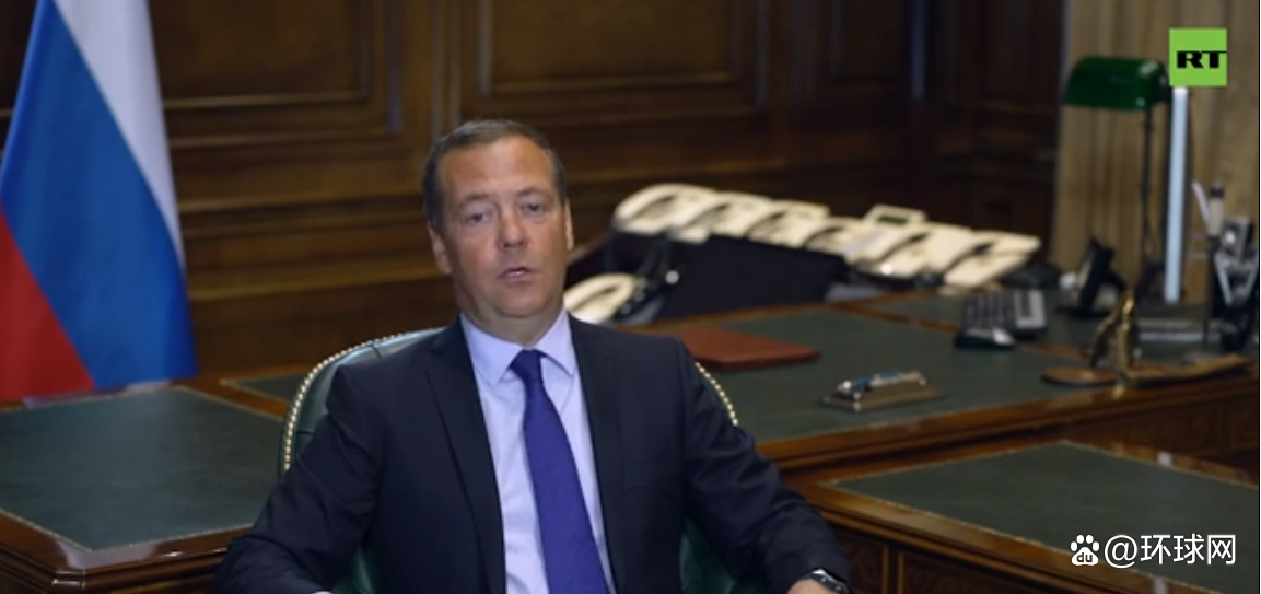 梅德韦杰夫接受法国LCI电视台采访的画面,图源:RT视频截图