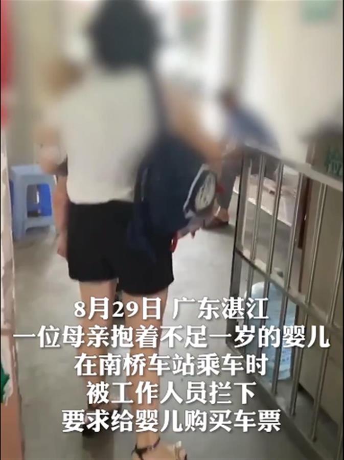 8月29日,广东湛江,一位母亲抱着不足1岁的孩子在南桥车站乘车时,被工作人员拦下要求给婴儿购买车票,遭到这位母亲拒绝,随即双方发生口角争执。30日,南桥车站工作人员回应称,每十位乘客才能有一个免票儿童名额,或者是半价名额。都是根据车站相关规定来的。(据8月30日封面新闻)