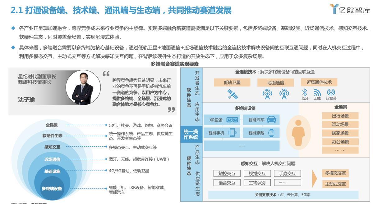 白皮书认为,各产业正呈现加速融合,跨界竞争成未来行业竞争的主旋律,星纪时代作为原生企业,开辟出多端融合创新赛道,并提出以人为中心打造定义高端的下一代智能眼镜、智能手机与多端智能融合的“天地一体化生态”,有望引领新业态发展。