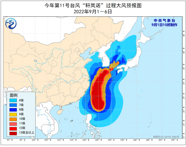 预计1日至6日,台湾以东洋面、巴士海峡、台湾海峡、东海、钓鱼岛附近海域、杭州湾、长江口区、黄海中南部海域以及台湾岛东部和北部沿海、福建中北部沿海、浙江沿海、上海沿海、江苏中南部沿海将有7~9级大风,阵风可达10~11级,其中台湾以东洋面、东海中部海域、钓鱼岛附近海域将有10~13级大风,“轩岚诺”中心经过的附近海面风力有14~17级,阵风可达17级以上。