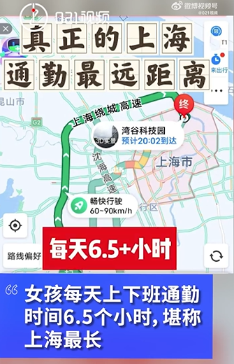 9月2日,据新闻晨报“021视频”报道,近日,“女生极限通勤每天来回6.5小时”的话题引起网友关注。