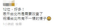 有网友称,“12位,好多!表示台北市是需要改变了。” ↓