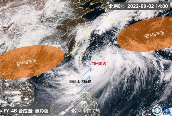 9月2日,“轩岚诺”徘徊少动,强度降级。微博@中国天气图