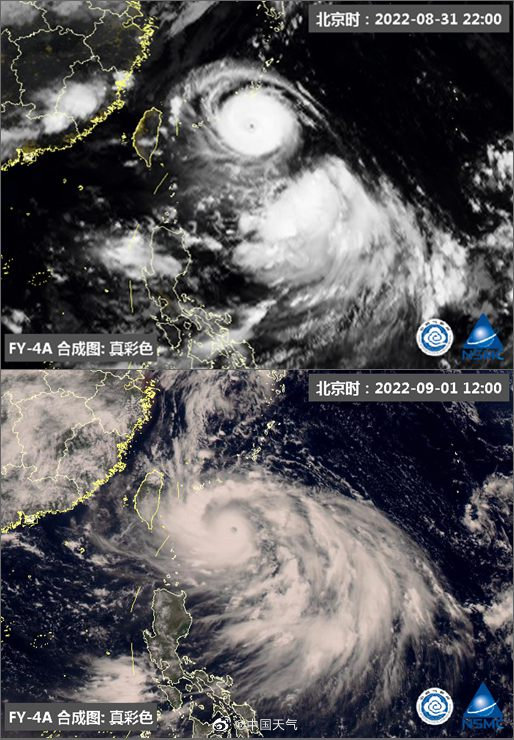 9月4日11时左右,“轩岚诺”再次升级为超强台风。微博@中央气象台 图