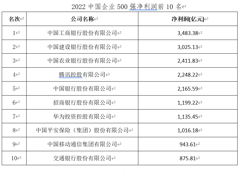 榜单显示,2022中国企业500强总营收规模首次迈上百万亿级台阶。入围门槛连续20年提高,万亿级企业首次突破10家,千亿级企业数量接近五成。前十榜单包括:国家电网、中国石油、中国石化、中国建筑、工商银行、建设银行、平安保险、农业银行、中国中化、中国铁路。