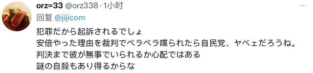 有人说:“因为山上犯了罪,他应当被起诉。不过,如果他在法庭上将他的动机全都说出来,估计自民党会遇到大麻烦。担心他在审判之前能否平安无事。也有可能会出现‘神秘自杀’。”