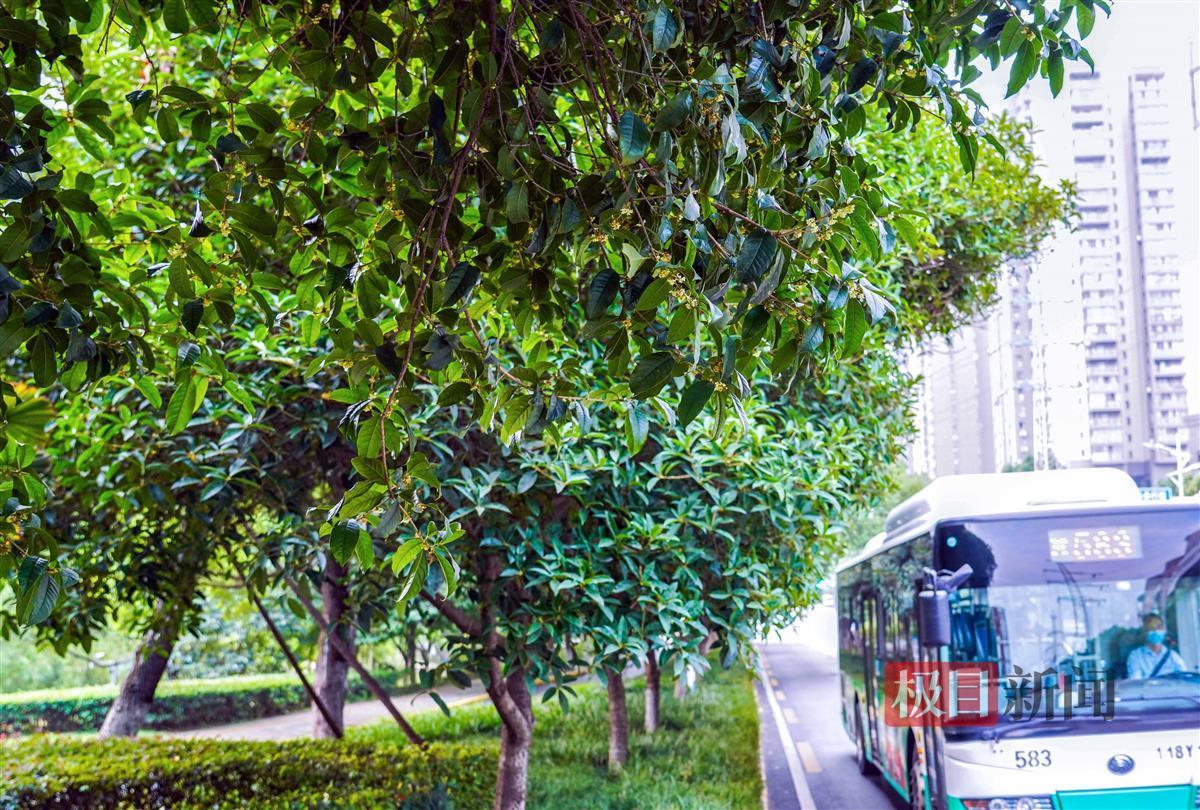 (文中图为武汉珞喻路吴家湾附近,少数桂花树已飘香)