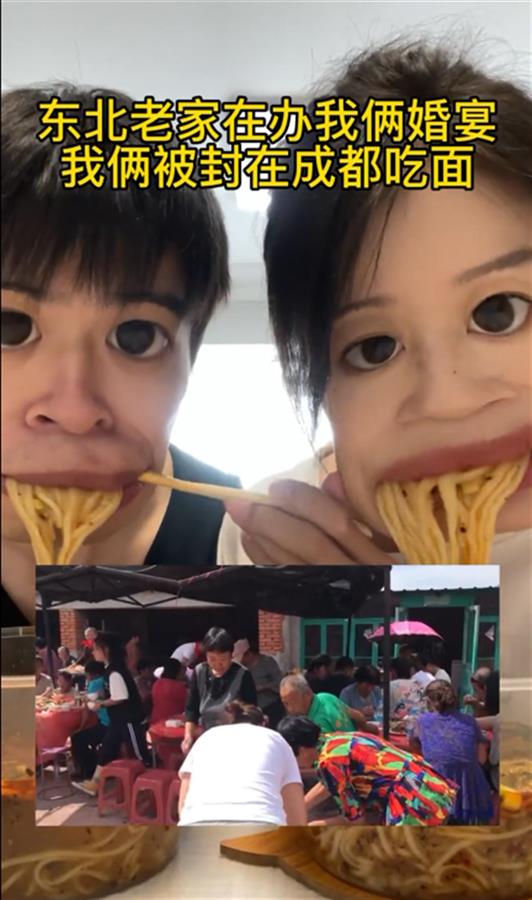 9月10日,张女士与何先生打开视频,远程参加自己的婚礼,看到小院里摆了很多桌,厨师们忙个不停。“我们在成都家里吃面条,通过视频里看着客人吃酒席。”张女士哭笑不得地对极目新闻记者说,“亲戚朋友来了好多,大家通过视频祝我们新婚快乐,还说很可惜我们没回去。婚礼办得很热闹,亲友们也都挺开心,好像少了俺俩婚礼也没差什么。”