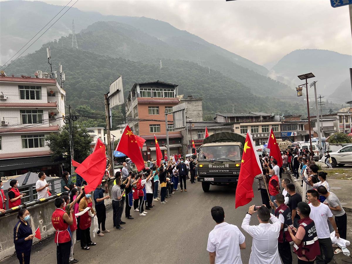 连日来,各方救援力量一直奋战在一线。9月13日,救援人员陆续撤离受灾较重的泸定县和石棉县,当地居民自发前往夹道送别。
