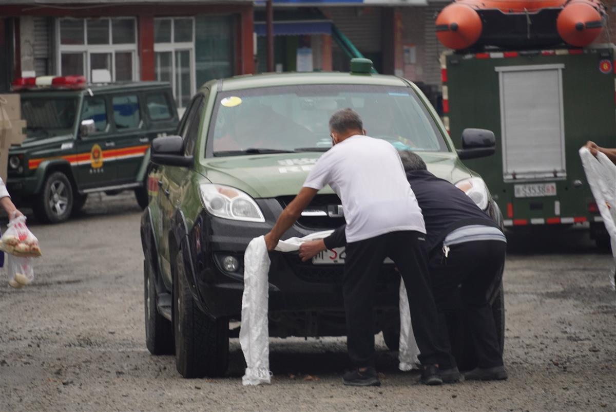 泸定居民为救援车辆系上哈达(来源 四川森林消防总队)