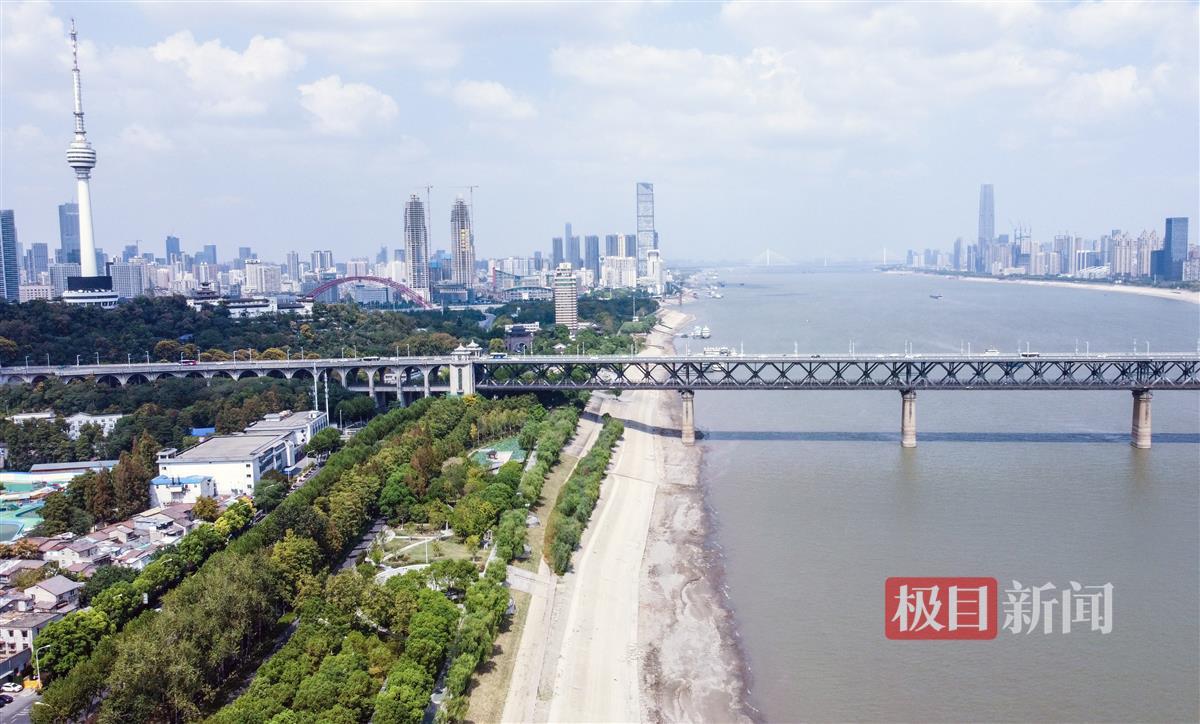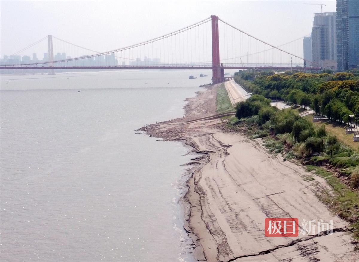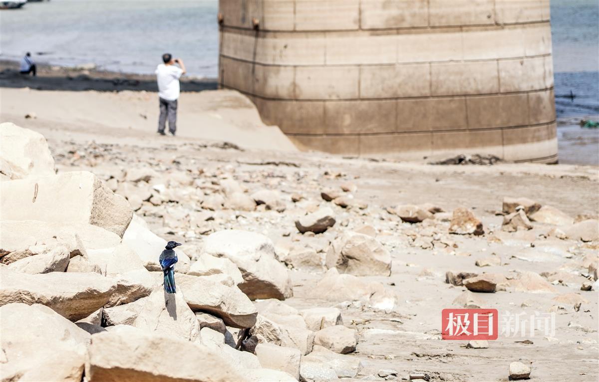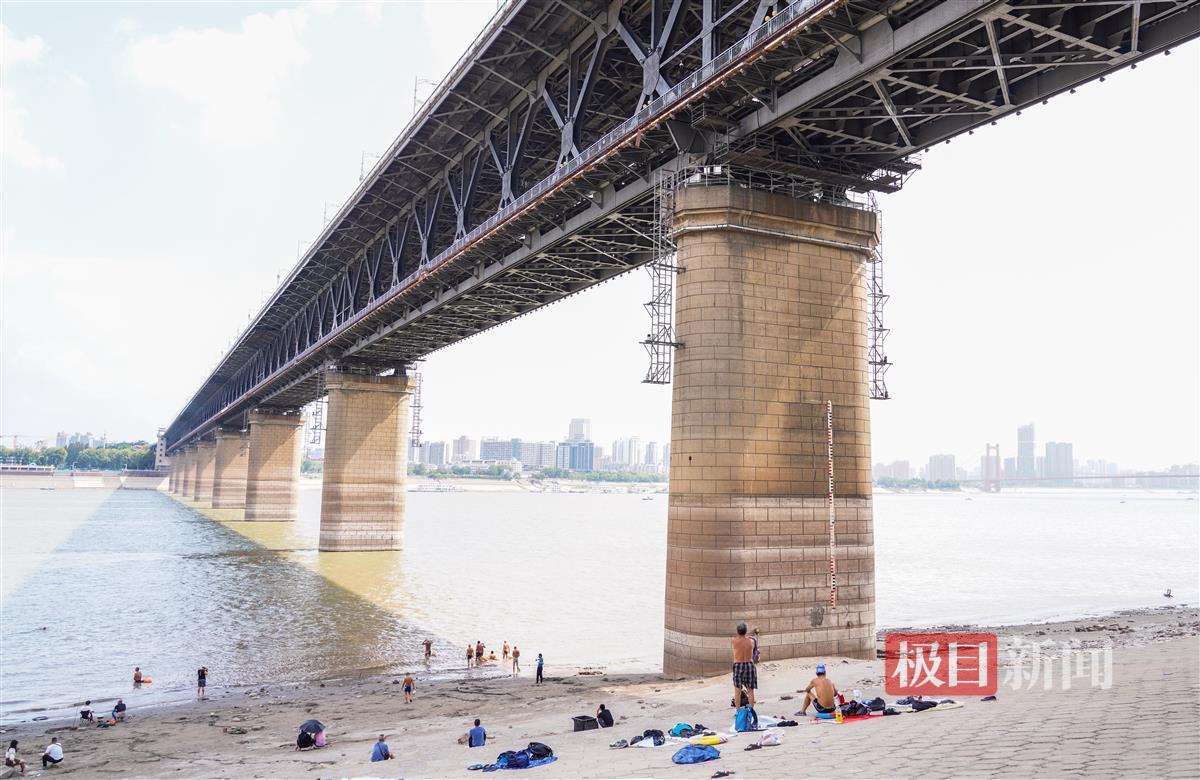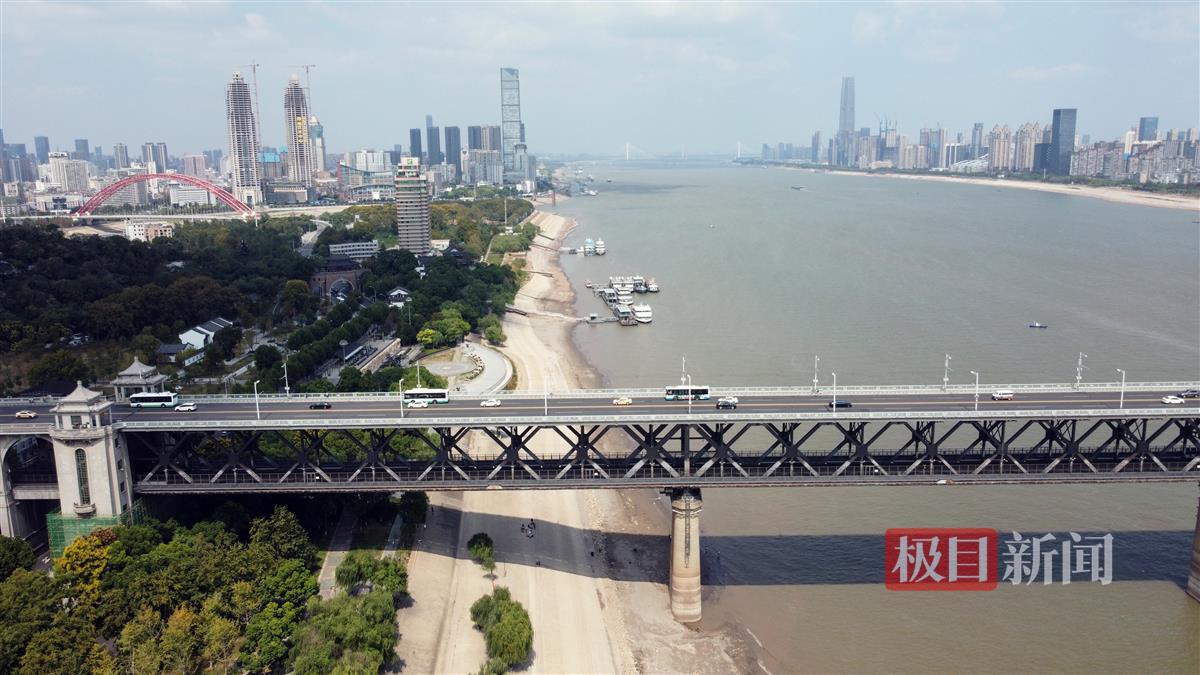 9月14日16时,汉口(武汉关)水位是13.51米,较历年同期日均值偏低8.64米,武汉长江大桥1号桥墩离开水面,成了大桥的陆地“旱脚”。