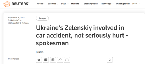 路透社:乌克兰总统泽连斯基遭遇车祸,伤势不严重