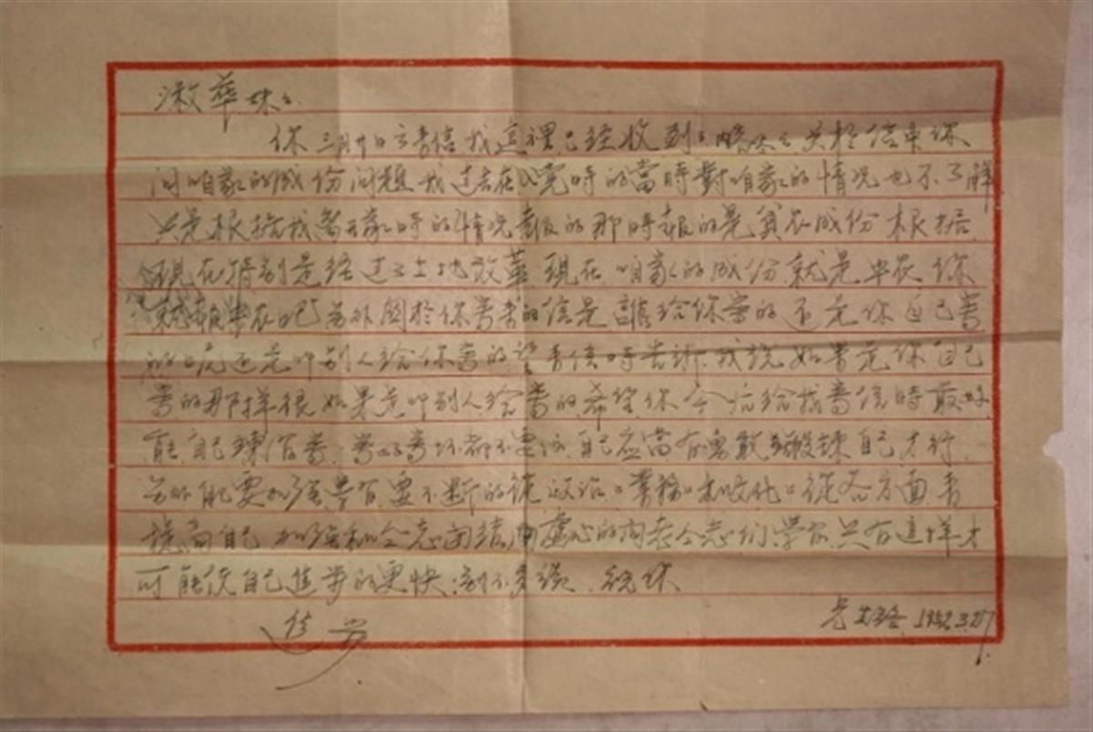 孙生禄写给妹妹的信:勇敢锻炼自己,加强学习
