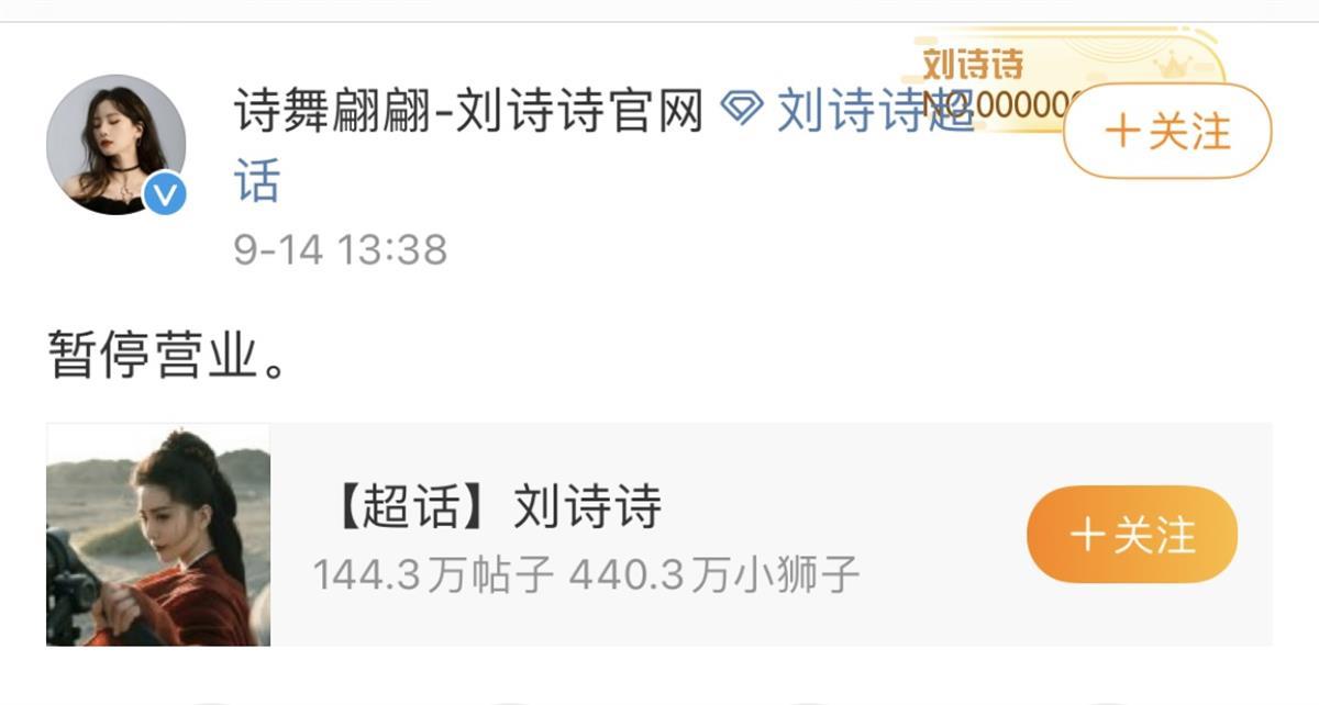 从9月14日起,这几个大站同时宣布不再更新刘诗诗的相关工作信息,也不再维护艺人相关数据。从刘诗诗粉丝在相关文章留言区的交流来看,“暂停营业”主要是针对《一念关山》出品方。