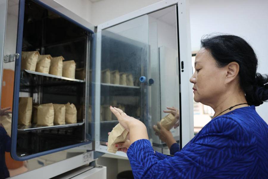 种质资源库工作人员在处理收集到种子(记者王鑫摄)
