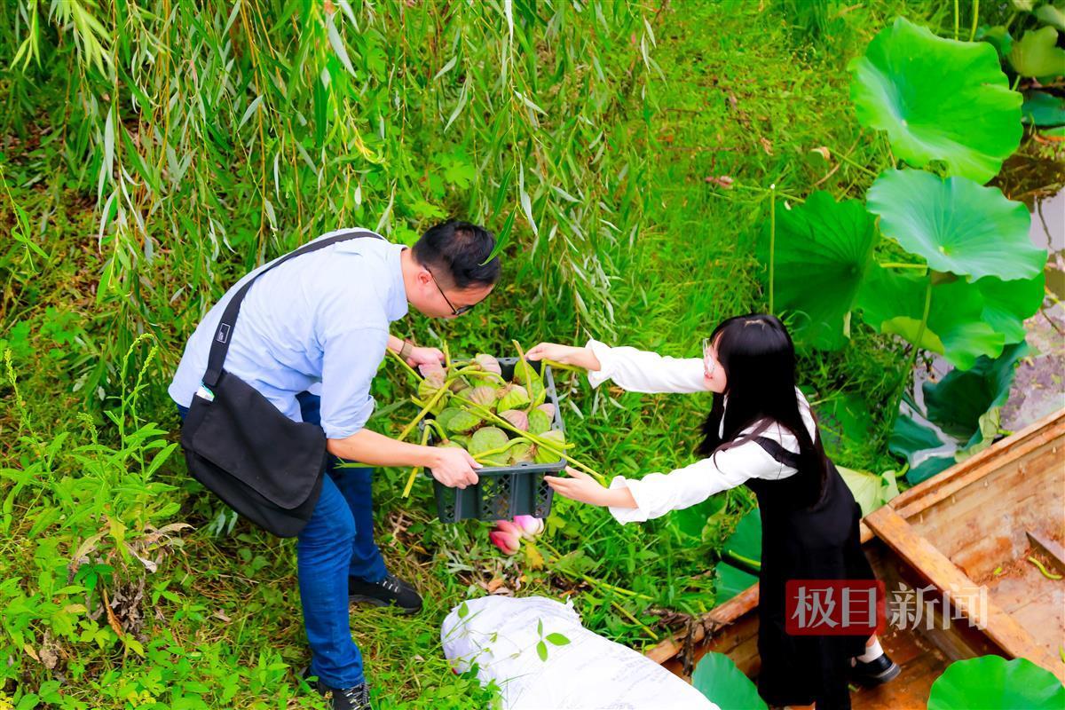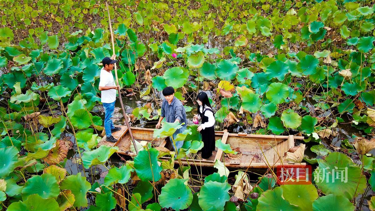 时下,武汉生物工程学院校内智汇农场的荷田园里,莲蓬迎来大面积成熟,喜获丰收。该校文学院文学社团学生在老师的带领下,一边泛舟采莲,一边听老师在现场讲解古代文学和大学写作专业课相关知识。
