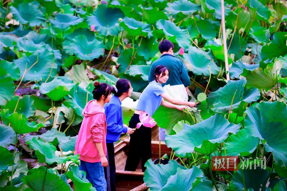 “不少人读过书卷中的荷花意境,也陶醉于诗词歌赋中的荷景,而在荷花盛放时一边摇船采莲一边体悟荷韵实属难得!”参与采风活动的2021级汉语言文学专业学生张颖说,“我在木船上,脑子里一直浮想王昌龄《采莲曲》中的意境,真正经历了,方能体会到这诗句中的妙意。”