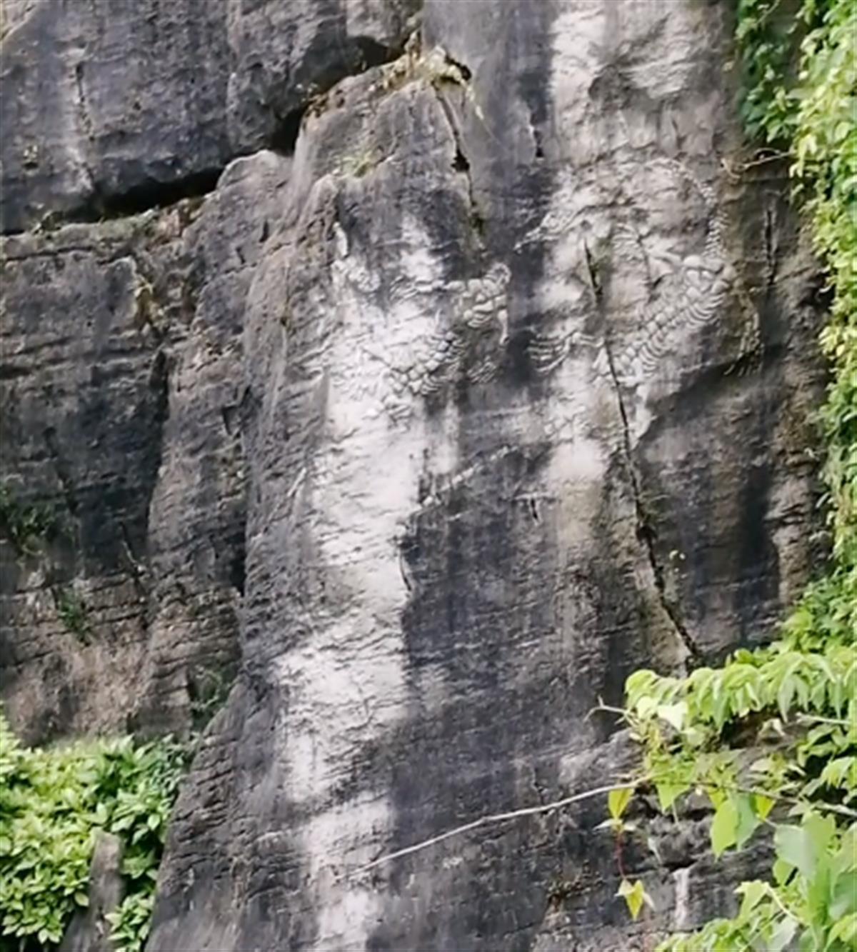 贵阳喀斯特公园位于贵阳市观山湖区,主要由南北两片石林景区组成。当地市民拍摄的视频显示,北石林园区内一块崖壁上,有两处动物骨骼形状的巨大图案,头、爪子、肋骨……完整可见。有网友称,这是两亿年前的贵州龙化石。也有网友质疑其是水泥做的。