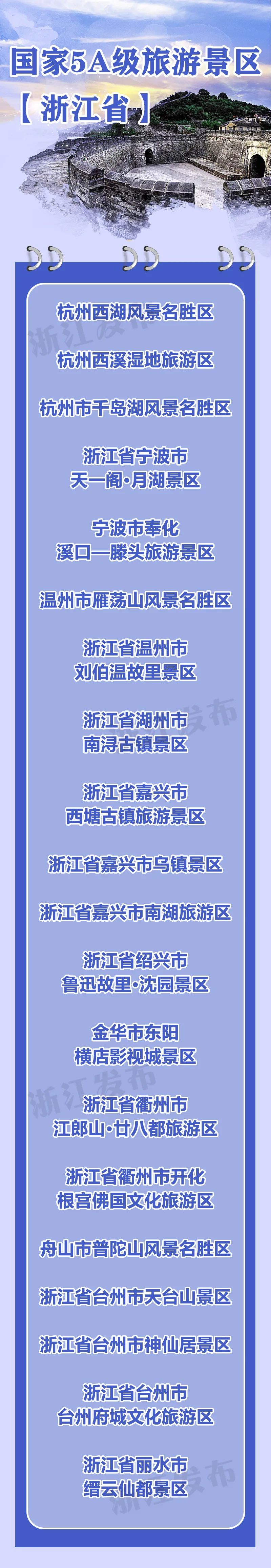 至此,浙江共有20家国家5A级旅游景区。