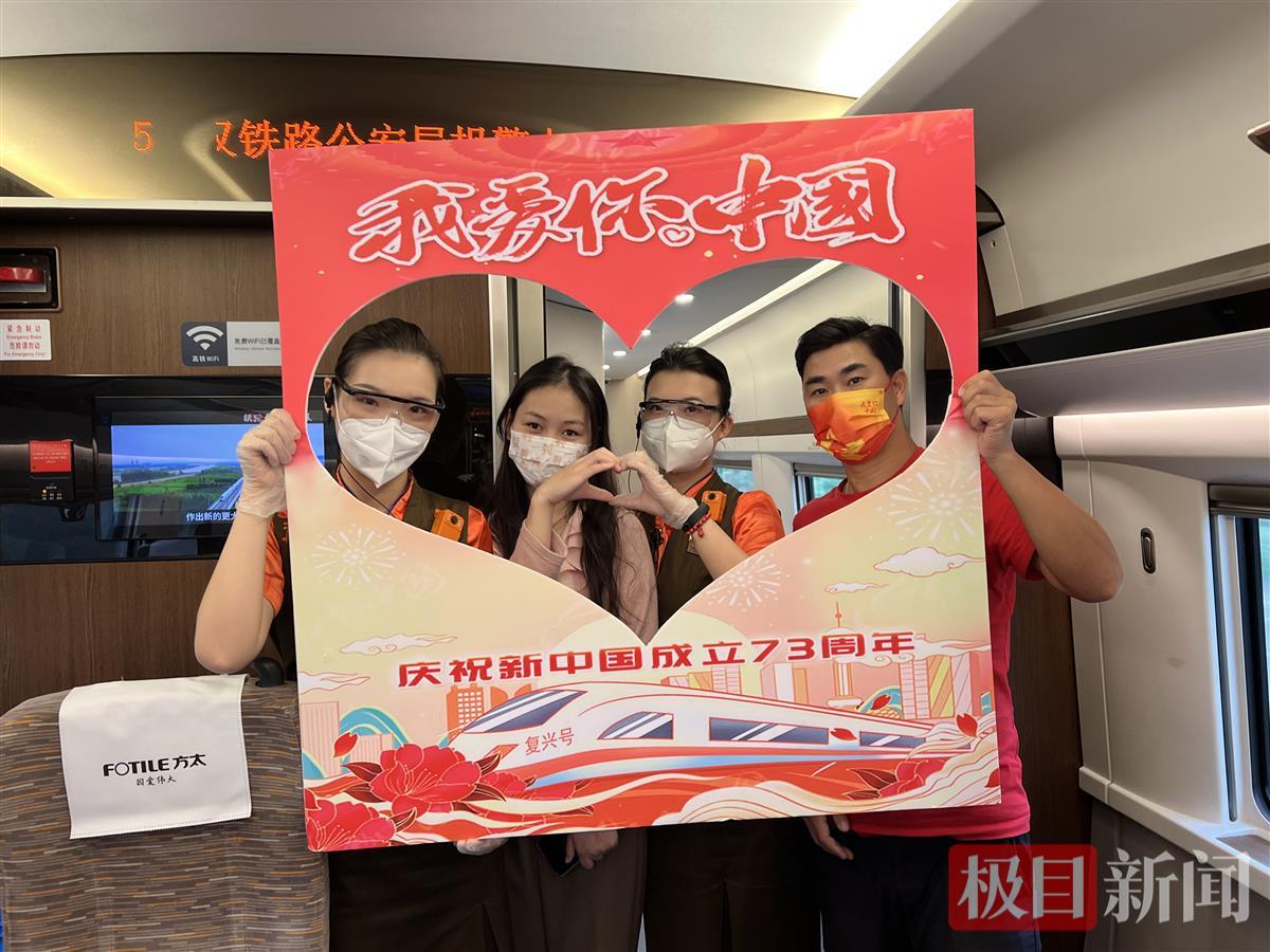 武汉客运段“凤舞楚天·楚天舒”乘务组与旅客合影留念(通讯员代好摄)