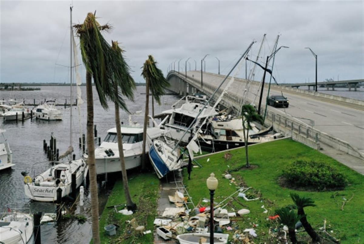 飓风伊恩在佛罗里达州迈尔斯堡经过该地区后,船只被推上堤道(图源:NBC)社交媒体上的照片和视频展示了破坏的场景:奥兰多被洪水淹没,迈尔斯堡的船只被毁,蓬塔戈尔达的树木像牙签一样被折断。萨尼贝尔堤道的一部分被摧毁,车辆无法过桥。