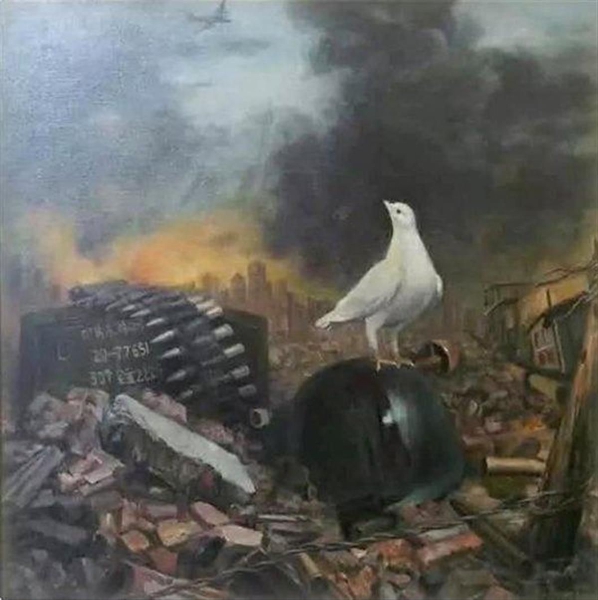 《和平必胜》油画 (作者:马国旗、谢珍珠合作)