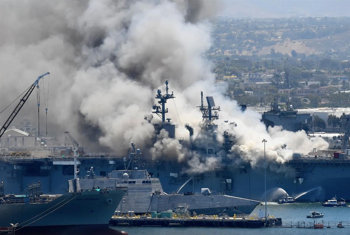 2020年7月12日,停泊在加利福尼亚州圣迭戈海军基地的美国海军“黄蜂”级两栖攻击舰“好人理查德”号起火,大火连续烧了4天,造成包括17名海军士兵在内的21人受伤。