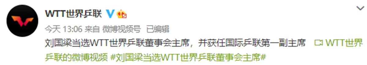 5日,刘国梁当选WTT世界乒联董事会主席并获任国际乒联第一副主席。