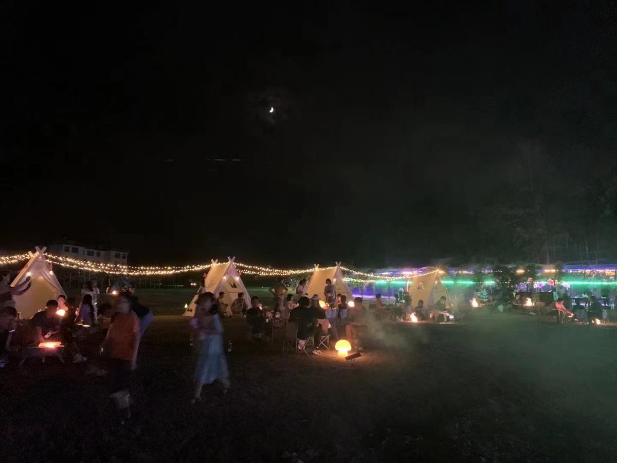 夜幕降临,景区内,点点灯光散落,习习晚风吹来,游客三五成群席地而坐,一边烧烤,一边听着音乐,在虫鸣草香中享受惬意舒适的闲暇时光。