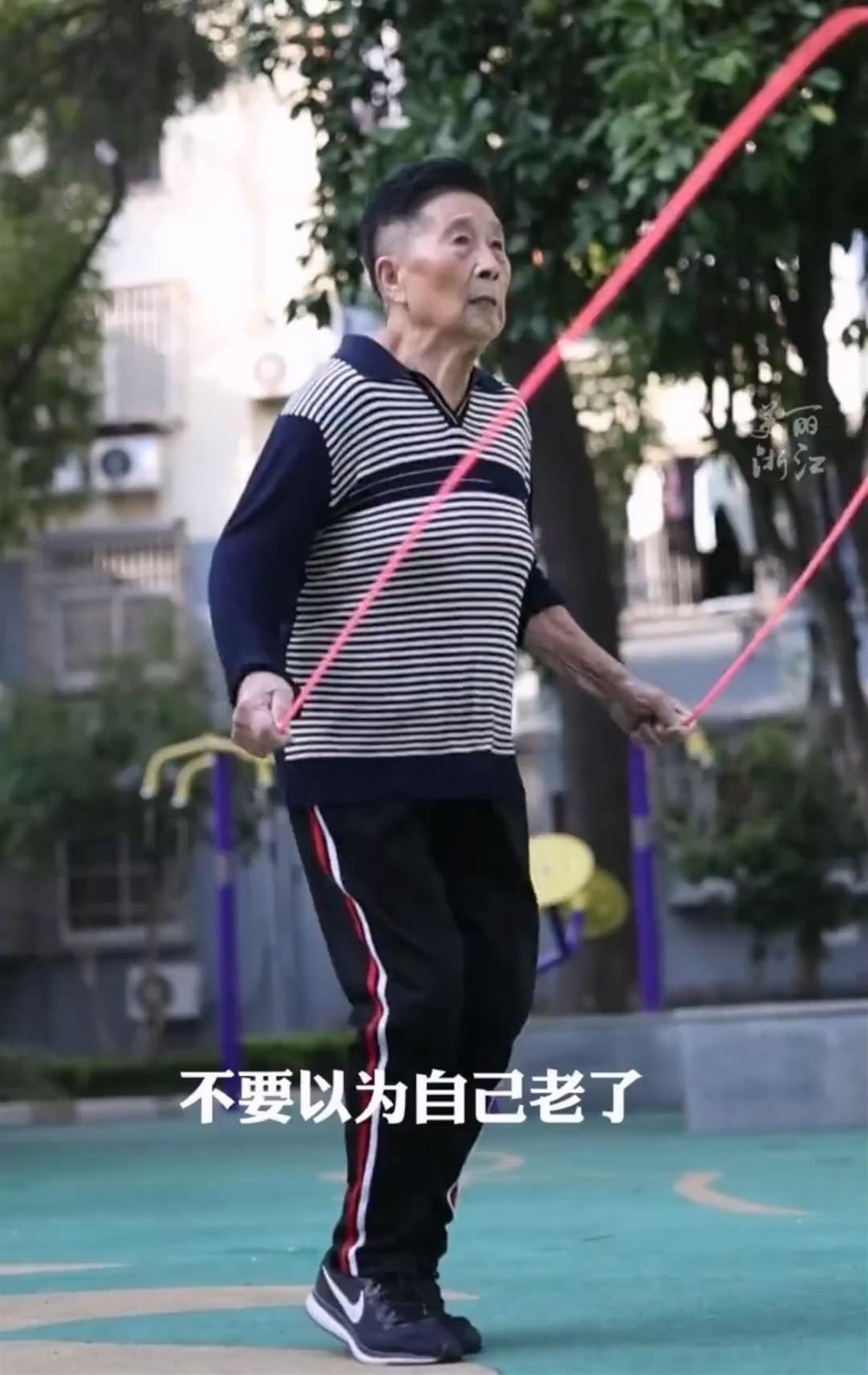 因为每天跳绳,翠苑四区小区所属居委会工作人员熟知邹家明奶奶,看着老人身形矫健、动作标准,他们曾一度以为老太太才60岁,后来得知她已近80岁,他们有些吃惊。