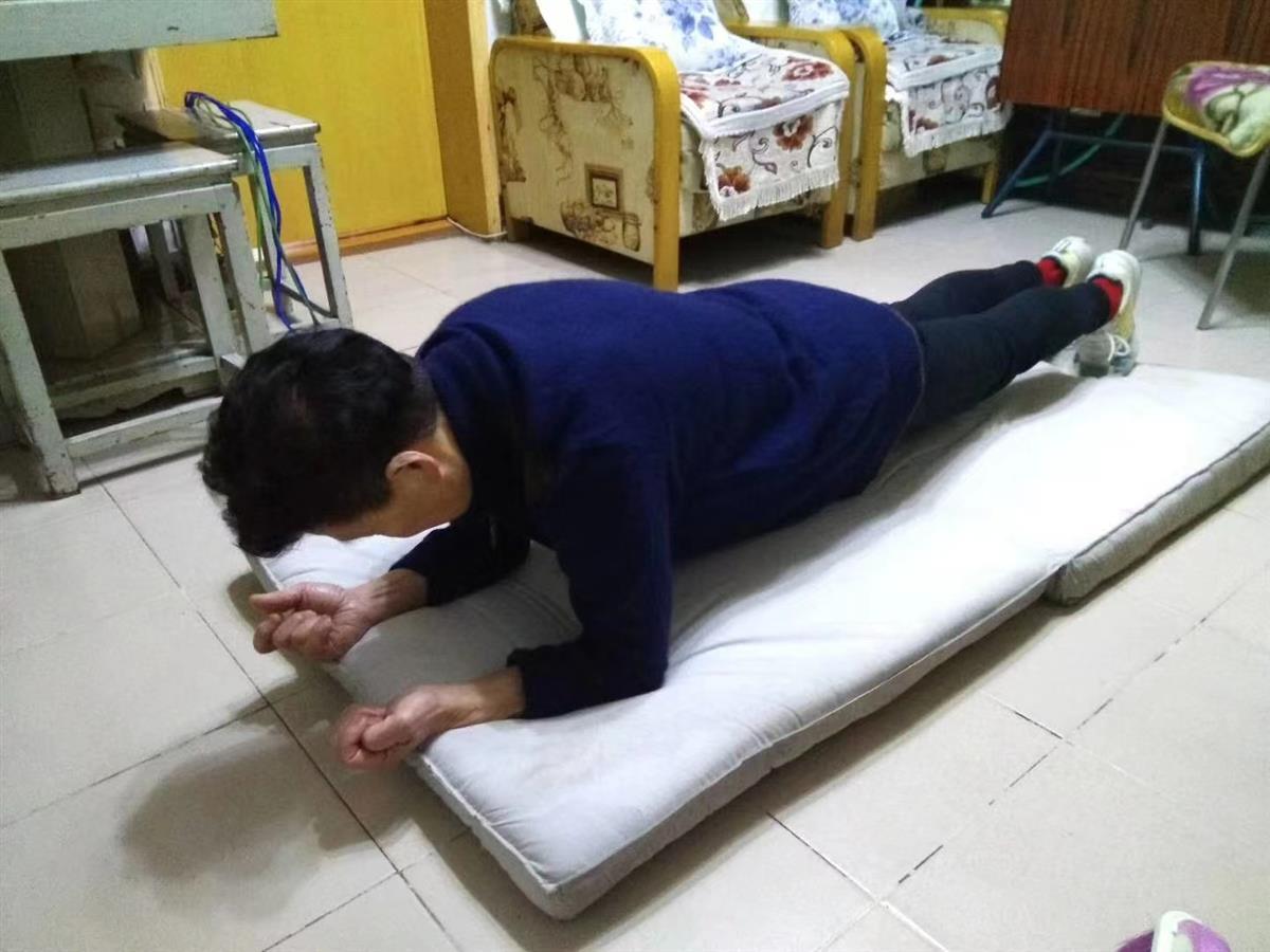 每天早上老人会锻炼半小时。跳绳前,她会做仰卧起坐、平板支撑、转呼啦圈当作热身。