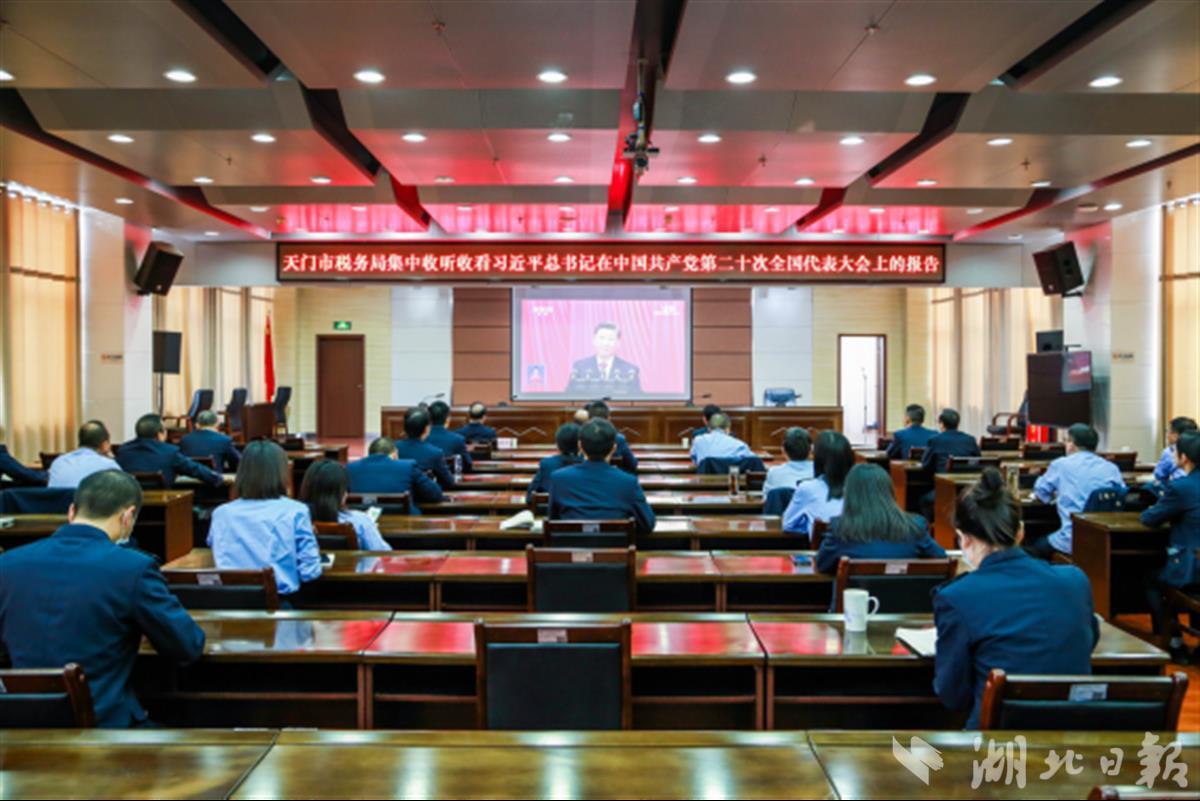 荆门市税务局结合疫情防控要求,组织广大党员通过网络、电视、广播等渠道,采取集中收看或个别收看等形式,收听收看党的二十大开幕会。当天,全系统共组织集中收听收看32场次,1200余名党员参加。隔离区、封闭区和管控区以及下沉包联社区的800余名党员自行收看直播。乡村振兴工作组的党员干部与包联村党员共同收看。