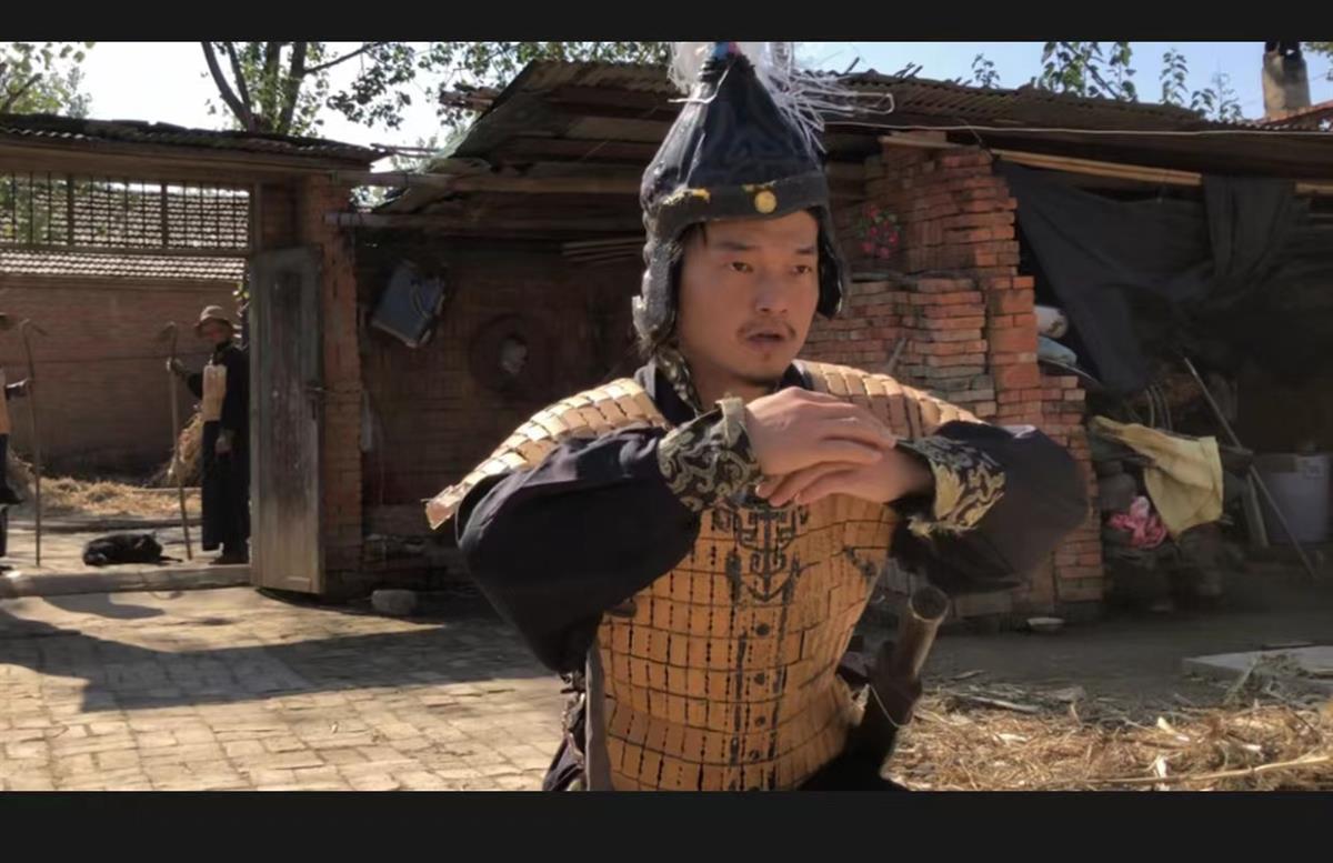 因为经费有限,小光充分发挥自己的“奇思妙想”,他用麻将块凉席置于前胸后背当盔甲、用毛笔画胡须、骑着电动车当座骑……就连拍打戏用的“兵器”,也是农村常见的耙子和粪勺。