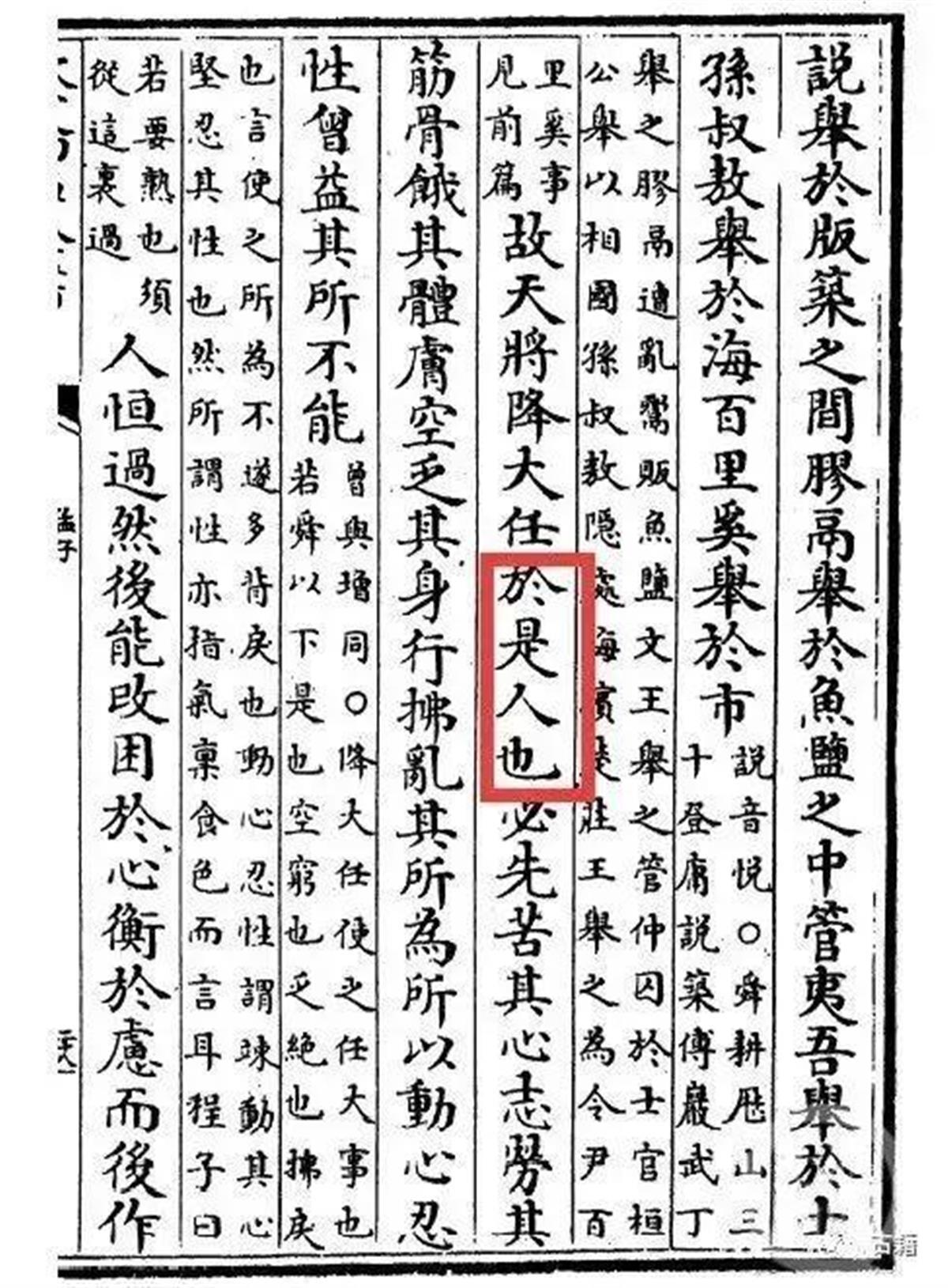 事实上,有网友查找了人教版教材1992版本、2001版本和2016版本,发现全部都是“是人”。有网友也进行了查证,人教社历史上的这篇课文自1961年开始,包括1982年、1994年、2006年等各版本均是“天将降大任于是人也”;四库全书刻本《孟子集注》(宋·朱熹 注),明代刻本《孟子注疏解经》(汉·赵歧 注)均为“是人”。
