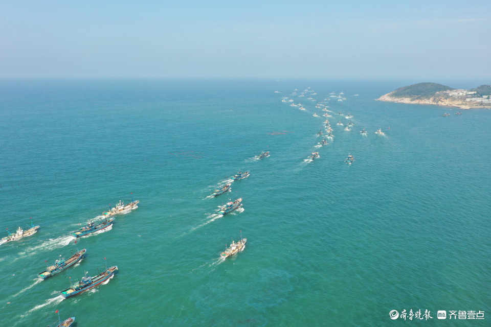 “回来啦。”一艘艘渔船整齐地靠在岸边,岸边等待的货车司机和渔民都行动起来,忙碌的卸货、分拣、装货,金秋时节的渔港码头洋溢着大丰收的喜悦。