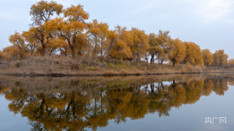 央广网库尔勒10月29日消息(记者李昊轩通讯员杨广天)近日,新疆库尔勒市普惠胡杨林在蓝天的映衬下仿佛一幅美丽的油画,层林尽染,美不胜收。近年来,得益于库尔勒市不断加大对孔雀河下游胡杨林生态修复保护力度,深秋的普惠乡形成了胡杨、水、绿洲和戈壁融为一体的金色童话世界。