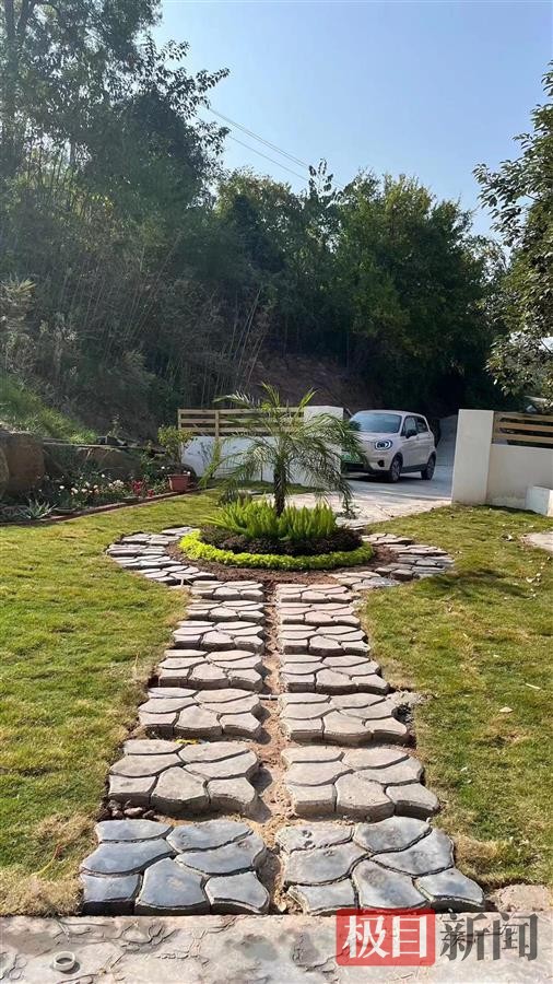 经过一个多月的寻找,2021年11月,两人在看了多套农村自建房之后,终于在一个山腰上找到了一栋带院子的平房。这栋房子前面有个平台,站在平台上远眺,能够远远地看到成都市区。房子后方,还有一大块空地,可以规划成后花园。