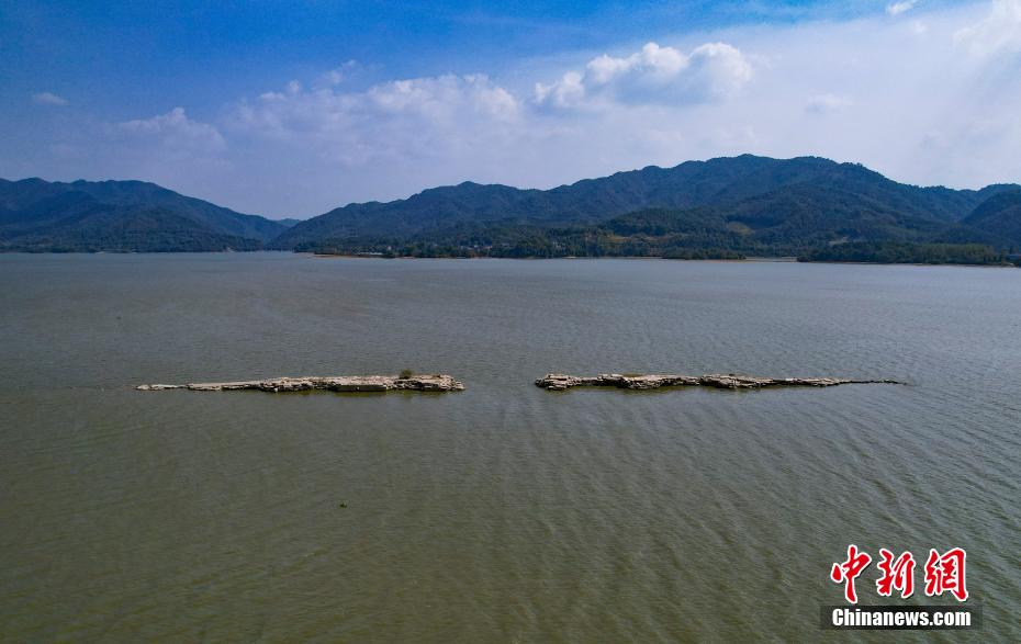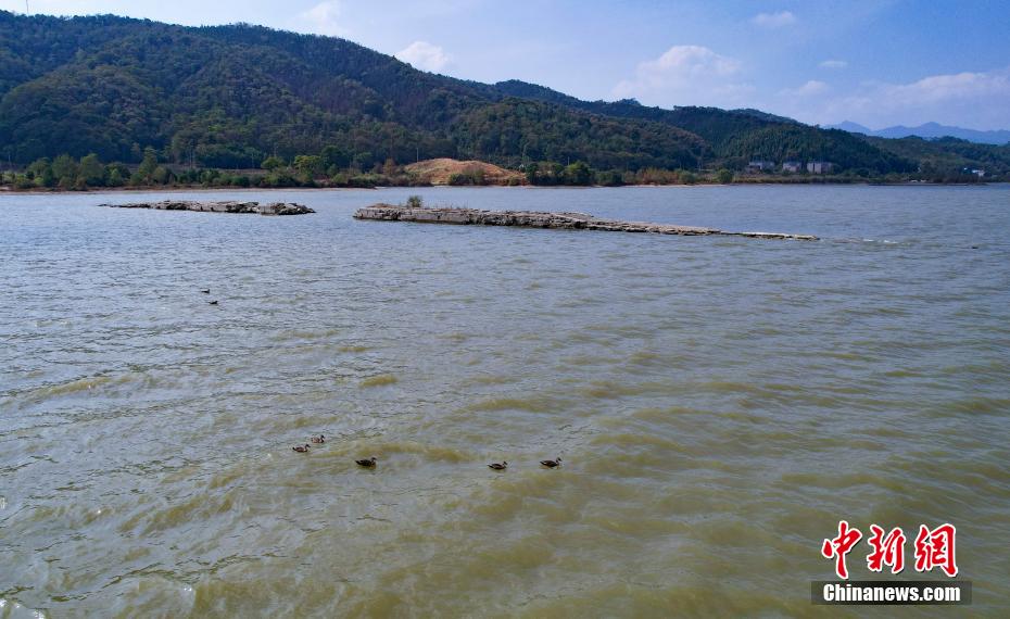 11月1日,位于江西省新余市仙女湖钤阳湖景区的万年桥浮出水面,该桥建于明朝嘉靖年间。据了解,万年桥因上世纪50年代兴修水库没入水面,是一座11孔的大型石拱桥,也是江西省现存最早的多孔石拱古桥。据了解,该桥桥基由10座千枚岩石垒砌的桥墩组成,桥墩可见嵌有风格迥异的吸水兽,历经数百年风雨的万年桥浮出水面雄姿焕发,成为一道独特的人文景观。赵春亮摄
