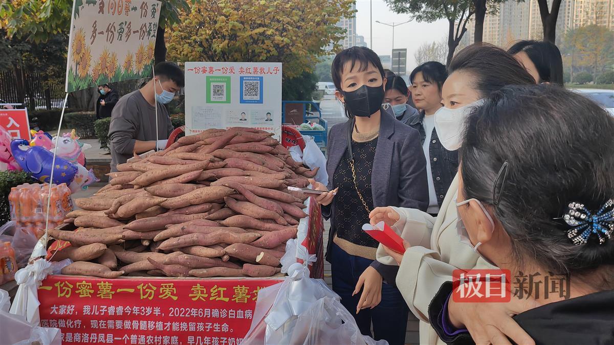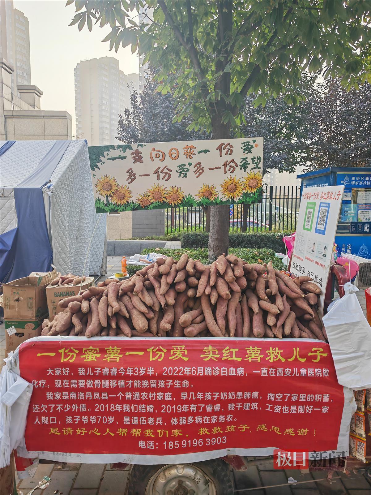 “一份红薯一份爱,为孩子筹救命钱。”“自己购买,自己挑选,自己扫码,感恩感谢。”11月1日下午,在西安曲江新区缪家寨小区东门,极目新闻记者见到了刘鹏的自助红薯摊,一辆摩托三轮车上摆放着整整齐齐的红薯,一侧立着一个牌子,牌子中间是刘鹏和妻子魏巧玲的身份证照片,以及他们孩子睿睿的诊断证明。