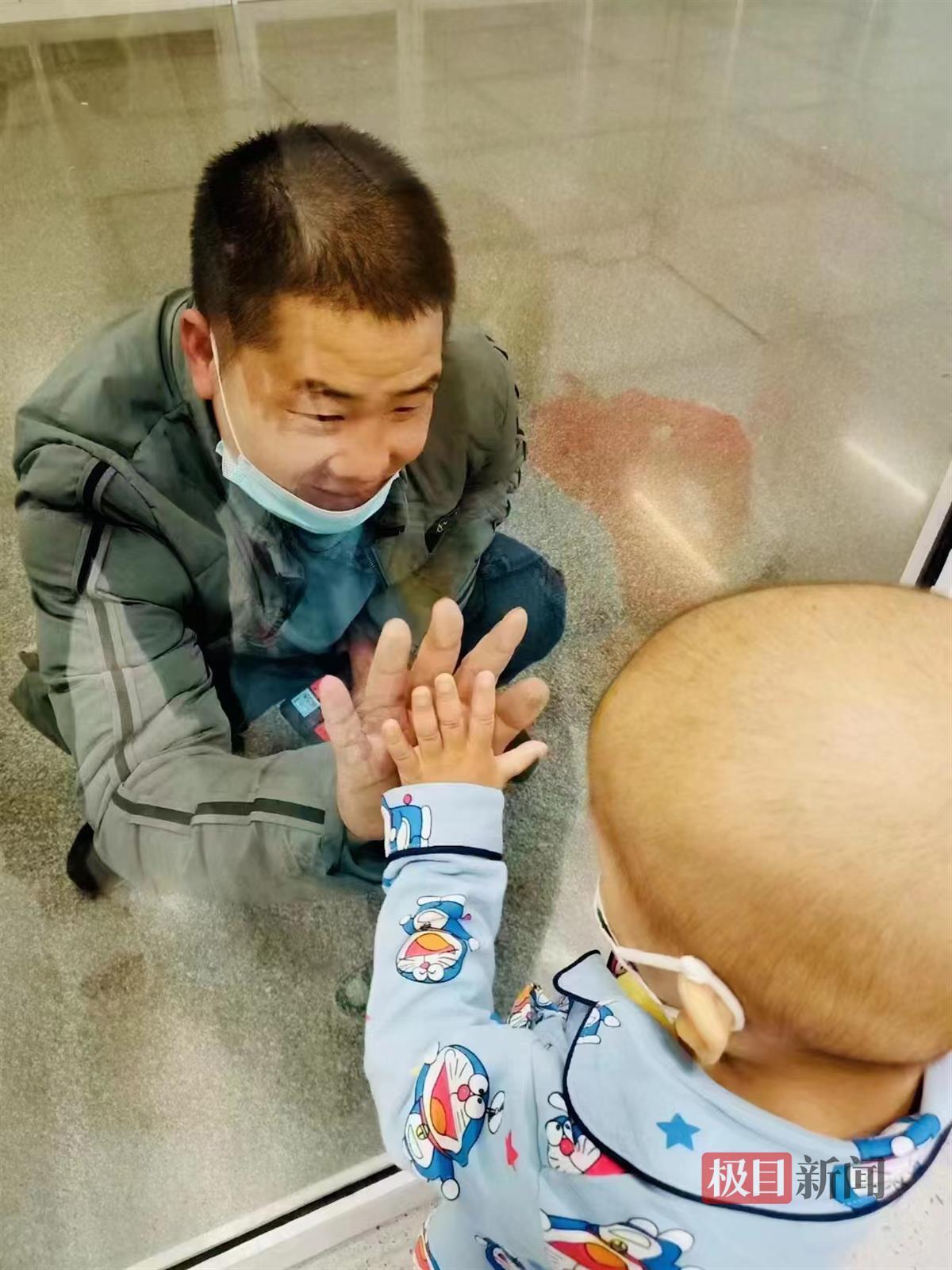 刘鹏与儿子隔窗相望