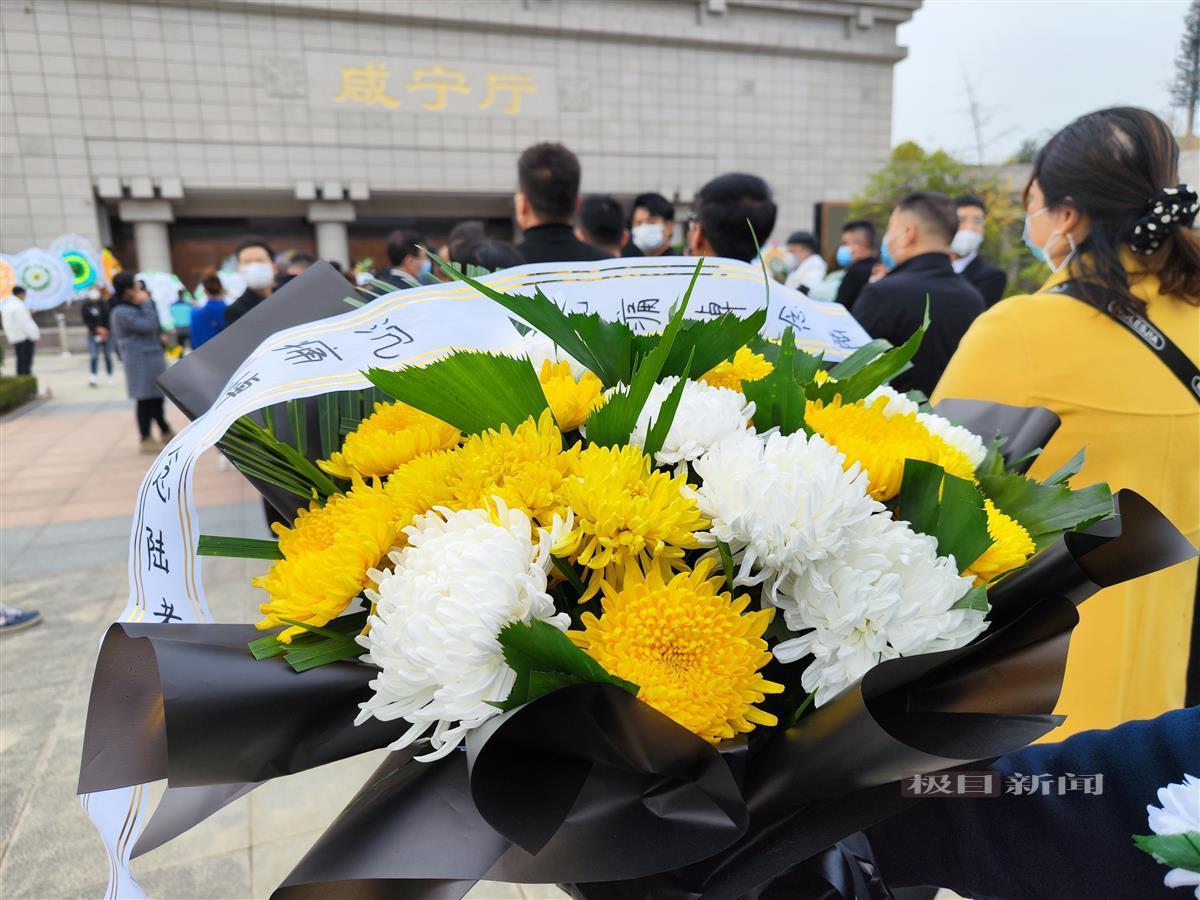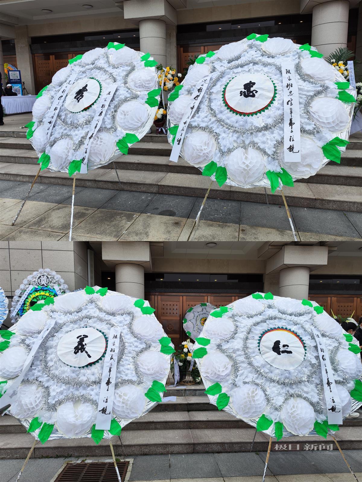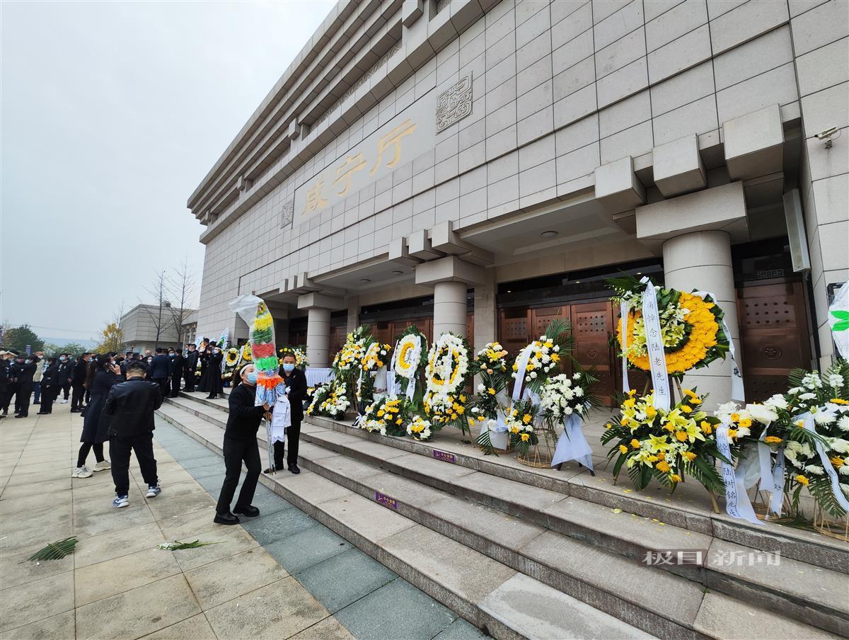 11月3日上午9时许,西安市殡仪馆咸宁厅大门两侧摆满了花圈,其中四个花圈上分别写着忠、孝、仁、义四个大字。现场前来送行的人排了长长的两队。
