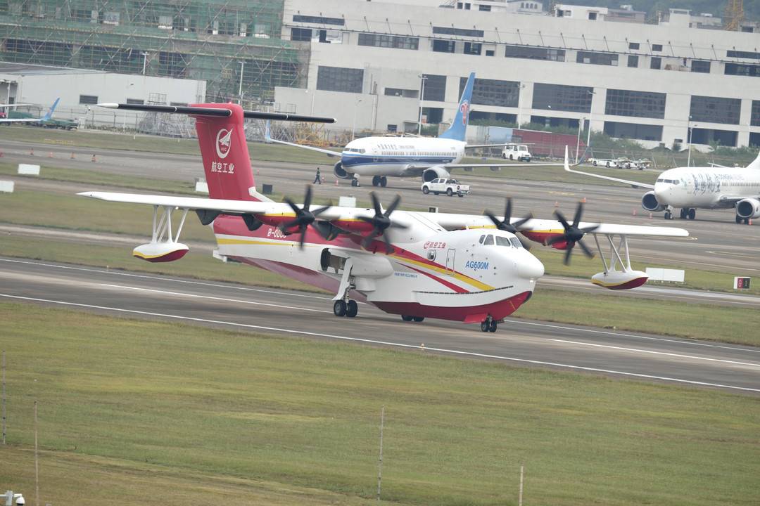 在第十四届中国航展上,我国自主研制的大型灭火/水上救援水陆两栖飞机将首次以两架“鲲龙”AG600M(灭火型)真机参加航展,并以全新涂装惊艳亮相,进行12吨投水演示,全面展示新状态全构型AG600M灭火任务系统功能。