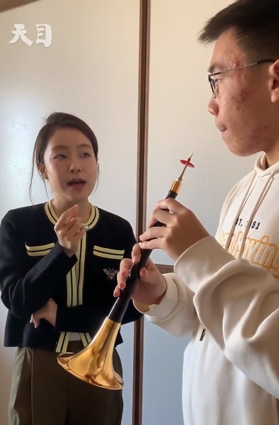 11月8日,天目新闻记者见到了刘雯雯,她告诉记者,她学习唢呐的原因是因为她来自于唢呐世家。