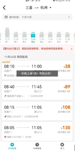 “飞往三亚的旅客很多是过冬旅客,现在飞去三亚,可能要好几个月之后才会回来,该航线返程客流较少。航司往往会降低票价吸引旅客,除38元裸票价格外,航司还会收取燃油附加费,减少‘空飞’带来的亏损。”去哪儿机票负责人董萌解释,登上热搜后,从预订量来看,增长并不明显。但搜索量大幅增长体现了低价票对旅客出行意愿的影响。